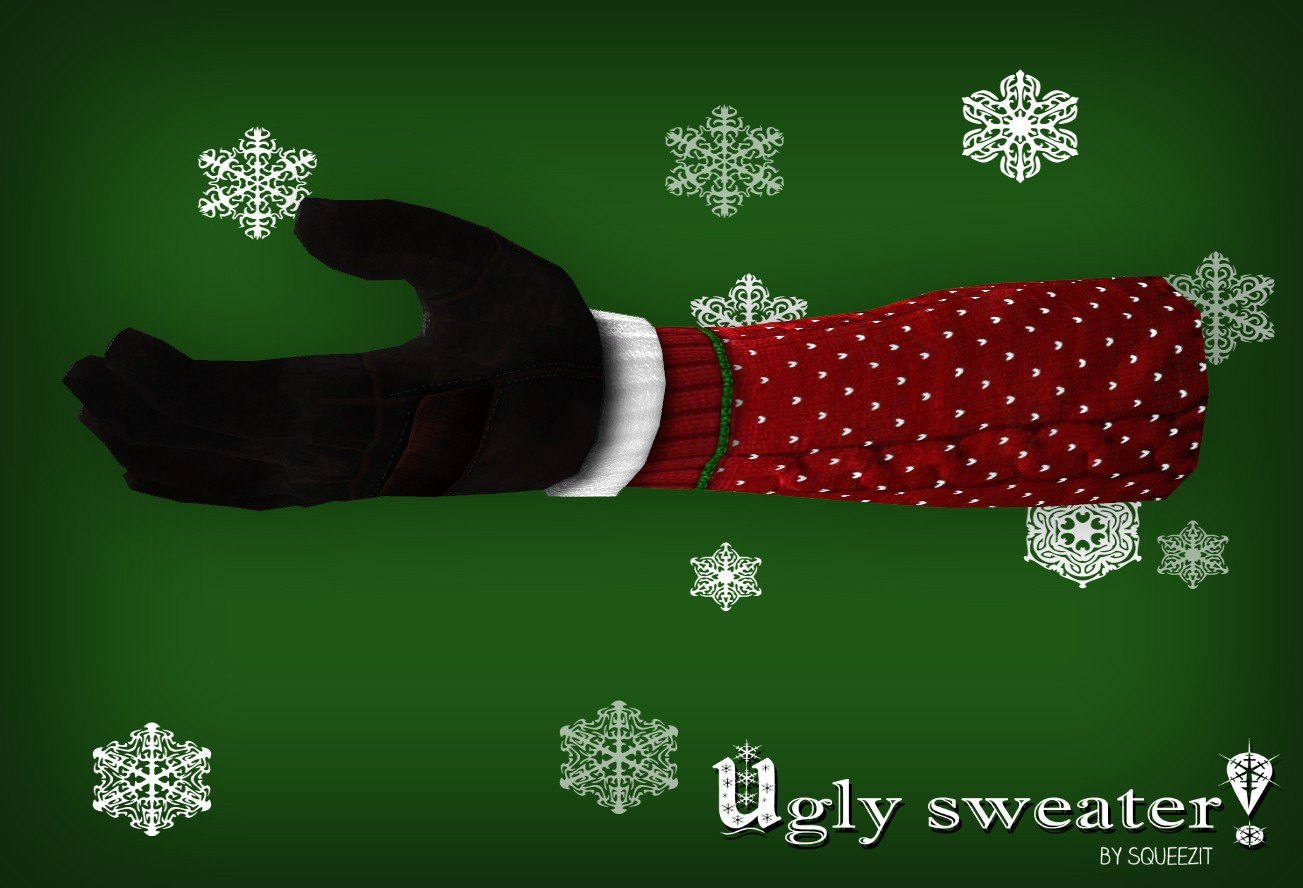 Ugly Xmas Sweater w/ Santa gloves