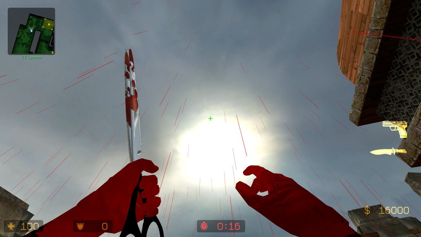 | Добавил: The DSystem 2016-04-09 14:18:34 55 views Just replace the folder "cstrike" and you are ready to go :) it's no matter the "vtf" hand skin you already have, it's only matter the "vmt" - valve material text. The hands have same properties as water, but i gaved them this coooool looking like blood, and don't forget the "vmt" is animated, sorry but i didn't make a video, to show you. Have fun guis and of course wait more stuff like THIS :)