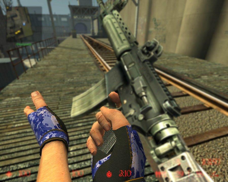Yet again another camo Glove but this time i used a cool blue on the camo + added differant camo from the last. because of some reports of the gloves fingers being incorrect i decided to make fingerless gloves ^_______^ hope you all like them .