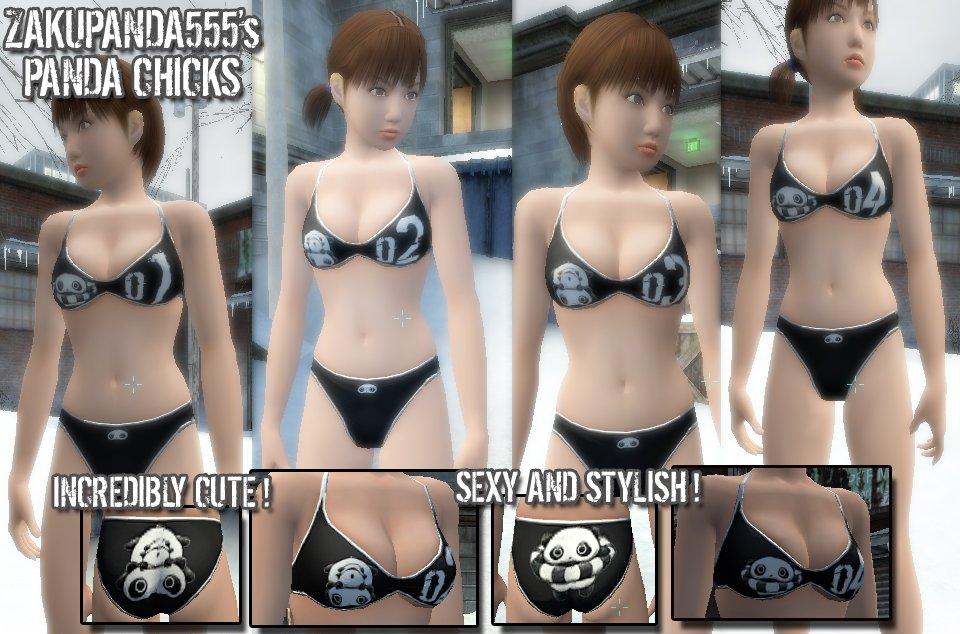 These are custom Korin hostage model skins, based on the sexy hostage model made by NKinta. Some people say that Korin is over-used, while others say that they want to see her nude. I side-step all controversy by saying that I simply want my hostages decked out in panda hotness,