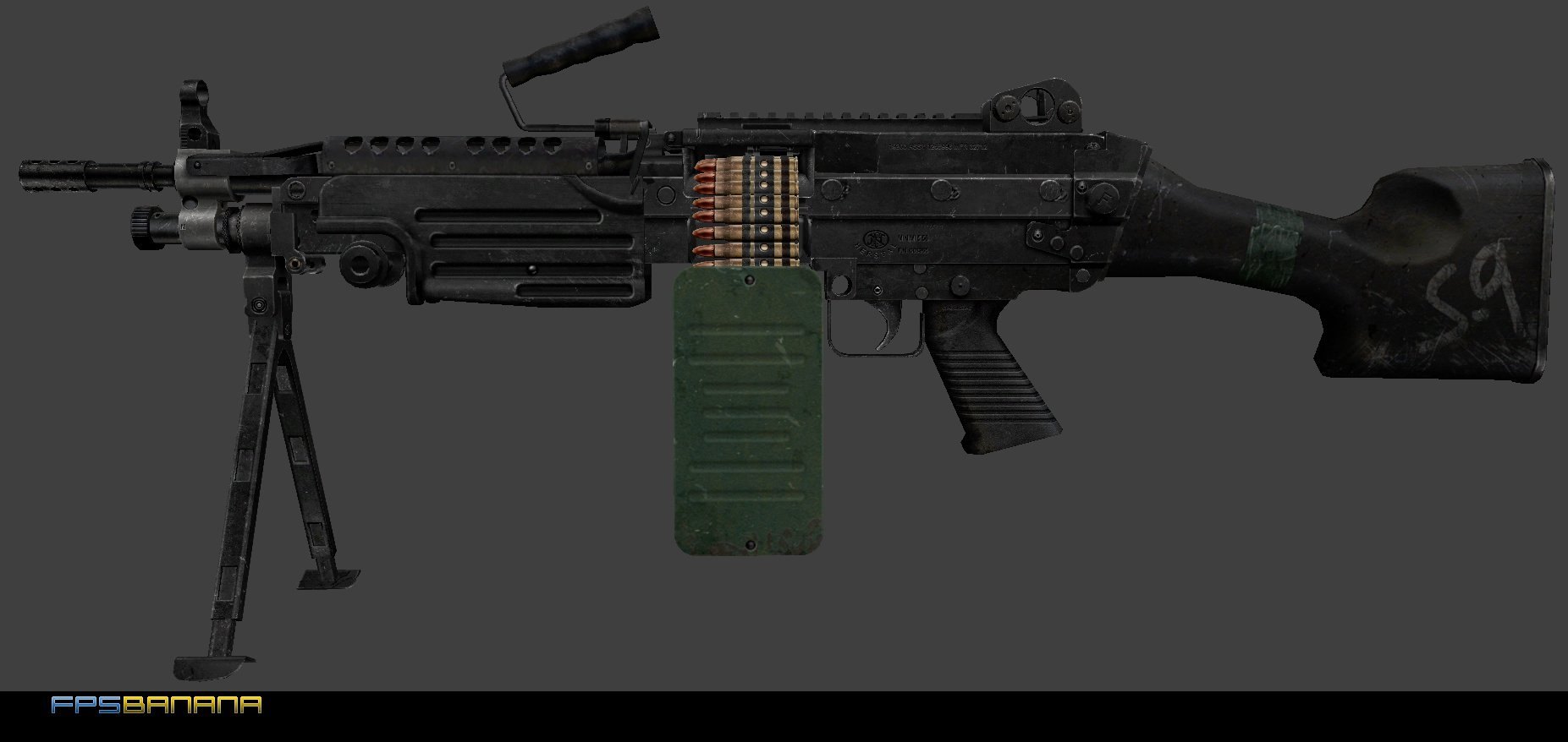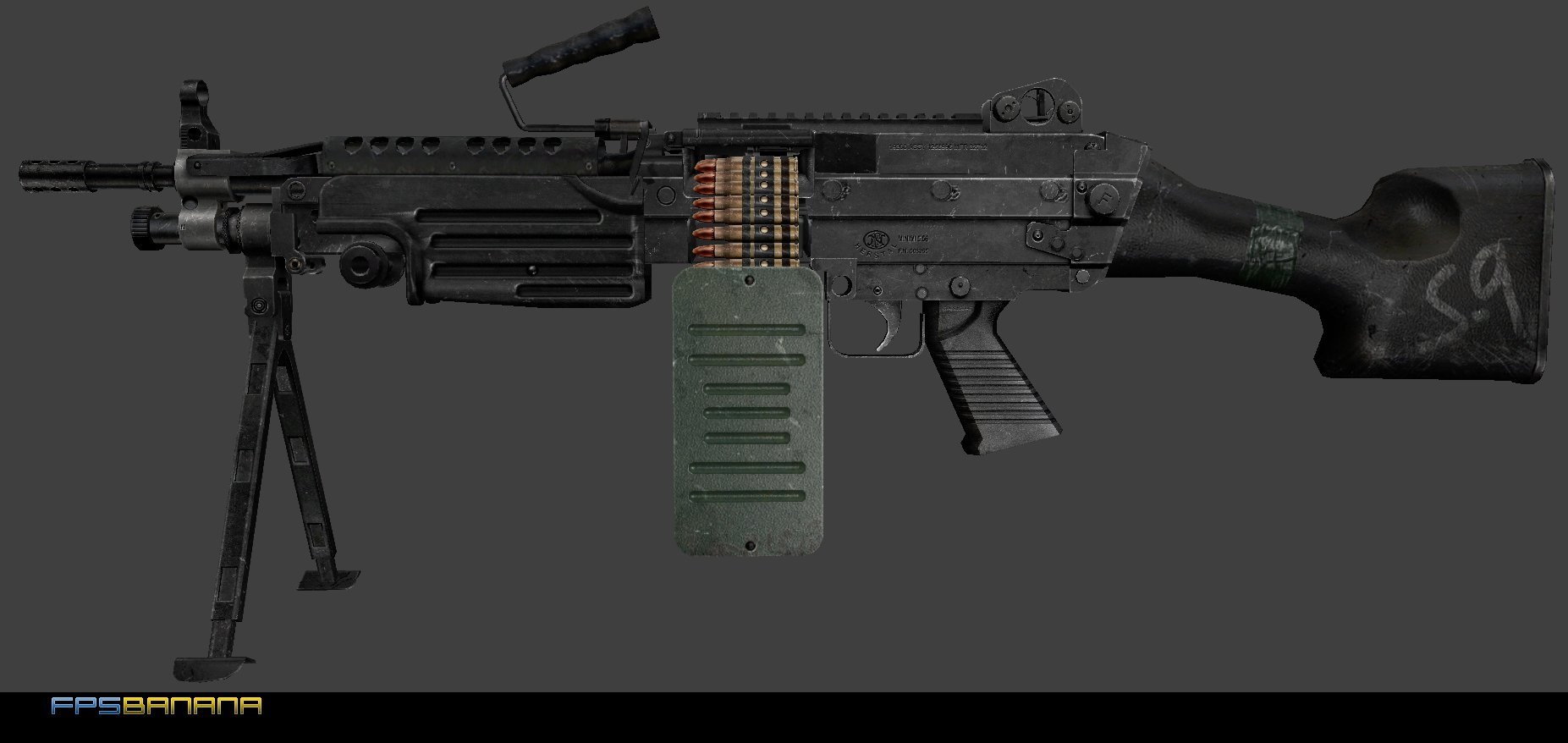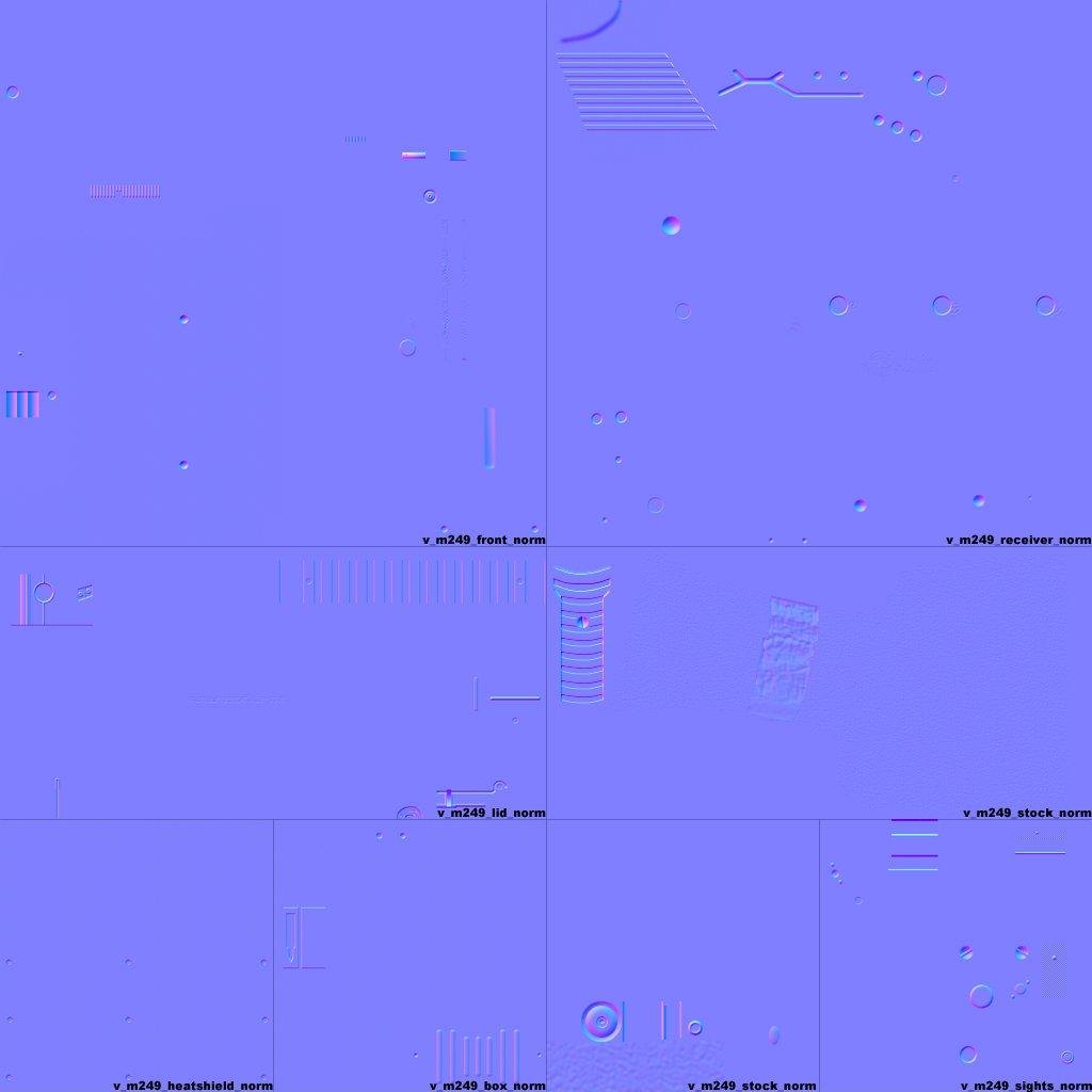 This the default M249 but with hand made normals to bring out the flat parts of the rifle that should appear 3-d. The only diffuse edit I did was on the adjustment nobs on the rear.