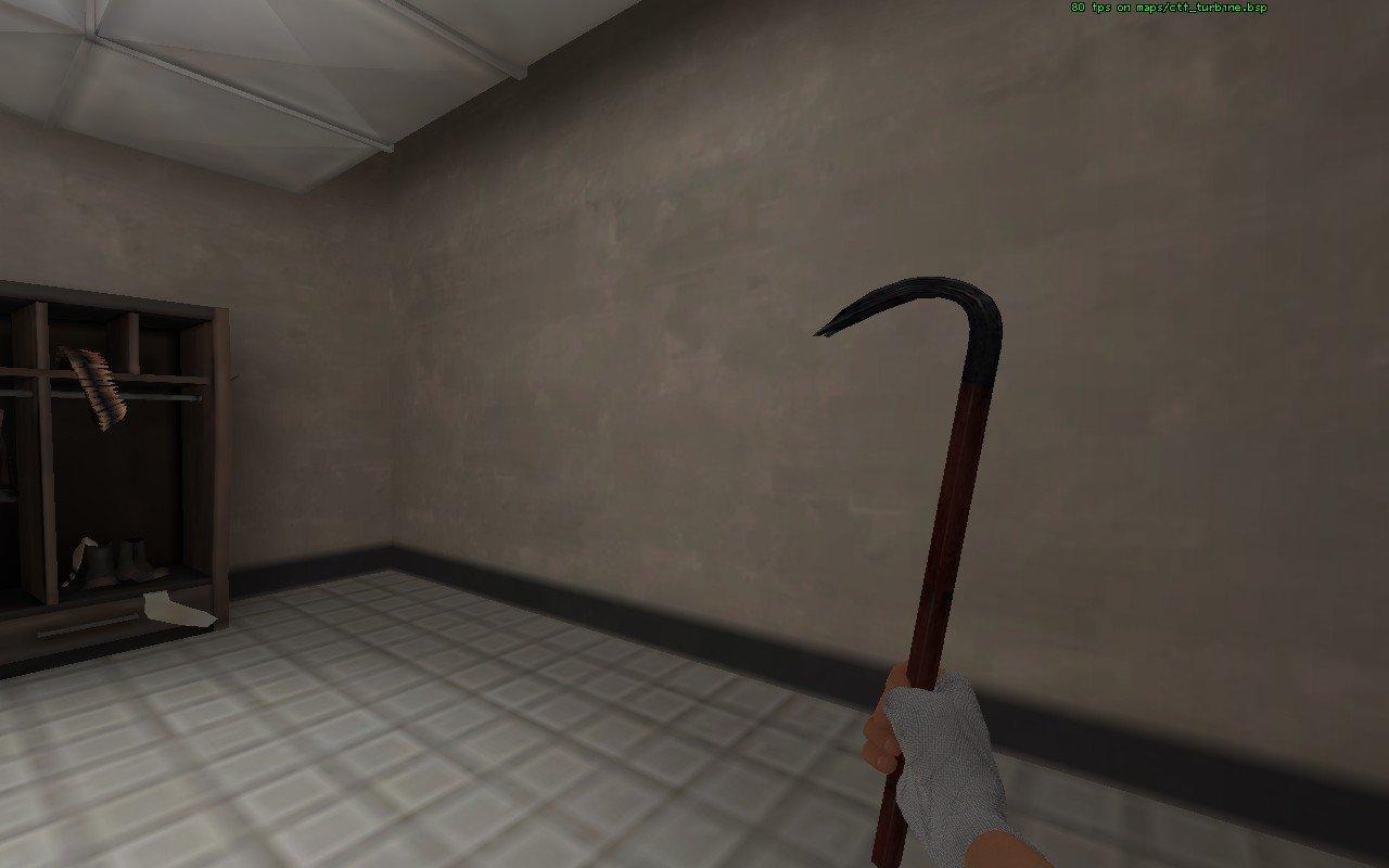Let's try this again. Its the crowbar from hl2 in tf2. THIS IS NOT ILLEGAL, THE MODEL IS SUPPLIED IN THE SOURCE SDK.EDIT: fixed the rotation so that its facing more toward the front