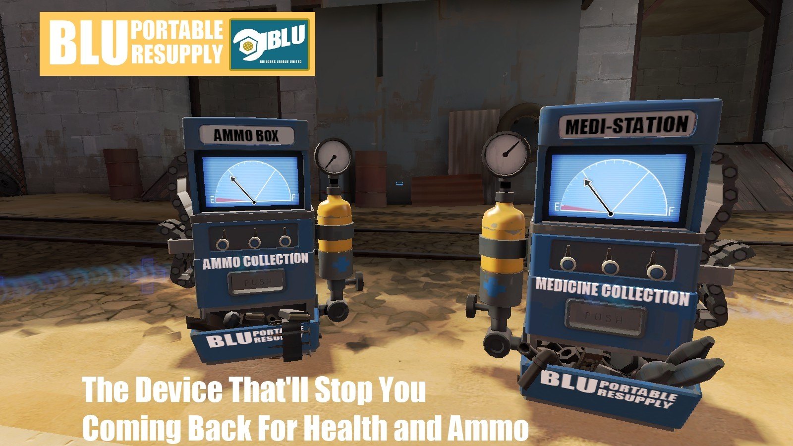 Добавил: The DSystem 2016-04-09 21:42:09 112 views BLU and RED thought one day of making their own Dispenser Device. So they both 'borrowed' Provisions Dispenser blueprints and made a few changes. But then, since both are in rivalry with each other, they stole each others blueprints. Only soon to give them back since both of them looked too identical.