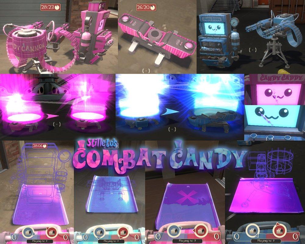 In my on-going quest to feminize my TF2 to the point of disgust, I bring you these girly-colored, candy-themed buildables.