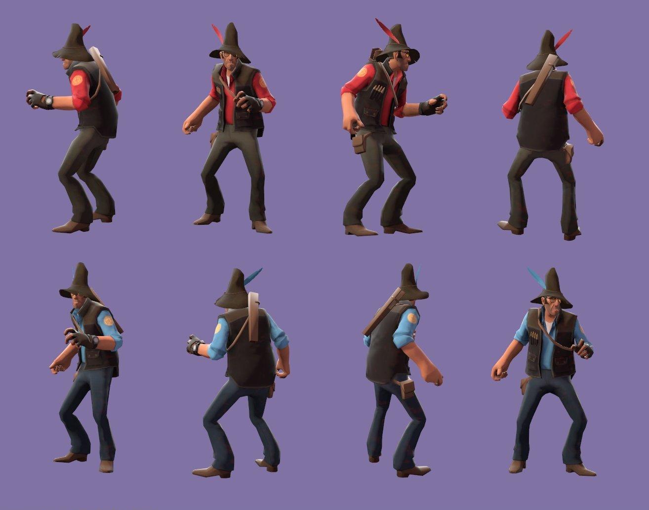 A conical felt hat with a feather (jiggleboned by Sparkwire) for the sniper.