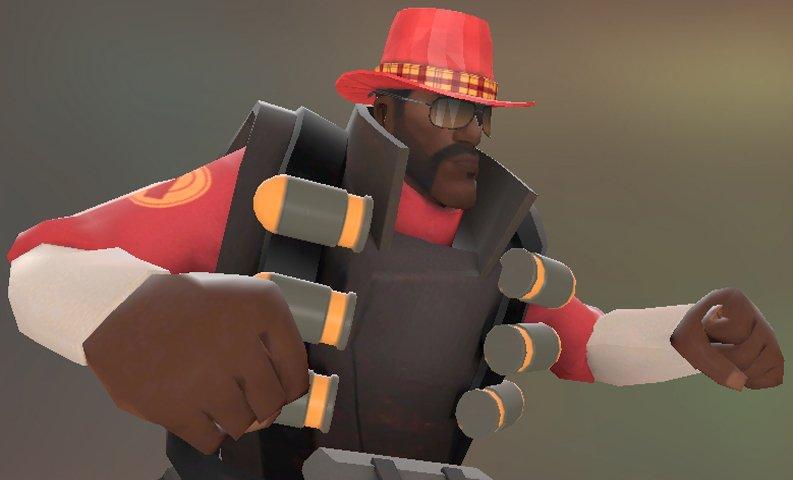 This is basically the Hustler's Hallmark and the shades from the Hound Dog put together, as a replacement for the Demoman model of Bill's Hat. No team colors, I'm afraid. Also, it's based on a Facepunch avatar fad that my friend started.