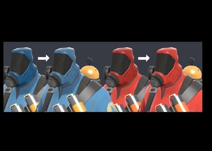 This fix the tint color of the hazmat to be more like their suit. Last picture shows the normal clipping Note:Doesn't fix the pyrovision googles.