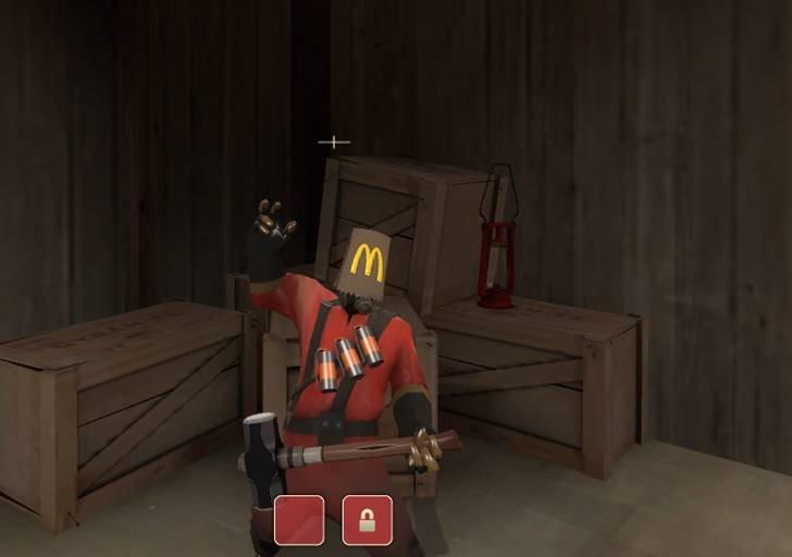Ok so thats my second skin in my entire life. It replases Pyro Gibus with halloween paperbag, which has a skin logo of Mcdonalds(red) Burger King(blu)