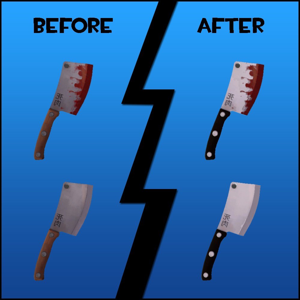 Replaced wood with a synthetic material. Lightened the metal parts a bit to make it shinier and "cleaner" looking.