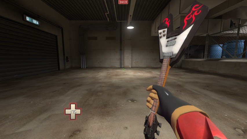 Добавил: The DSystem 2016-04-10 01:35:09 185 views Hello there! The new Brutal Legends promo taunt is pretty cool and it's a shame for that neat guitar model to be restricted as a cosmetic effect so I made it as a replacer for the frying pan. Hope you guys like it!