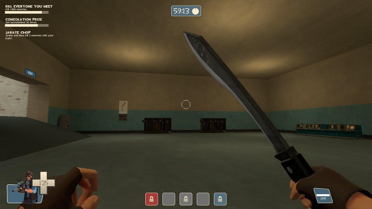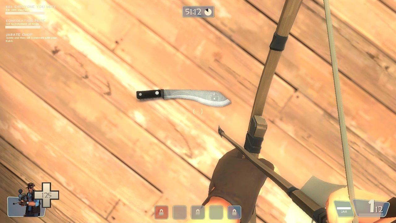 This is a souvenir from the sniper's deadliest hunt in his former life as a hunter in the Australian outback. He was hunted by a being, an alien hunter, 7 feet tall, strong enough to stop a charging rhino with one hand and able to jump 20 feet in a single bound. The ultimate predator, only a fool would think to challenge it. Not being a fool, the sniper took it out with a well placed headshot from two miles away. From its body he took this, a blade forged from a strange black metal, affixed with eerie, glowing symbols.