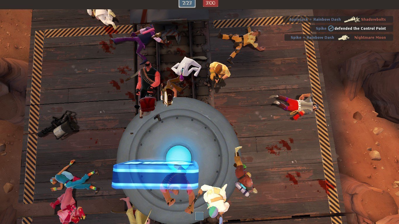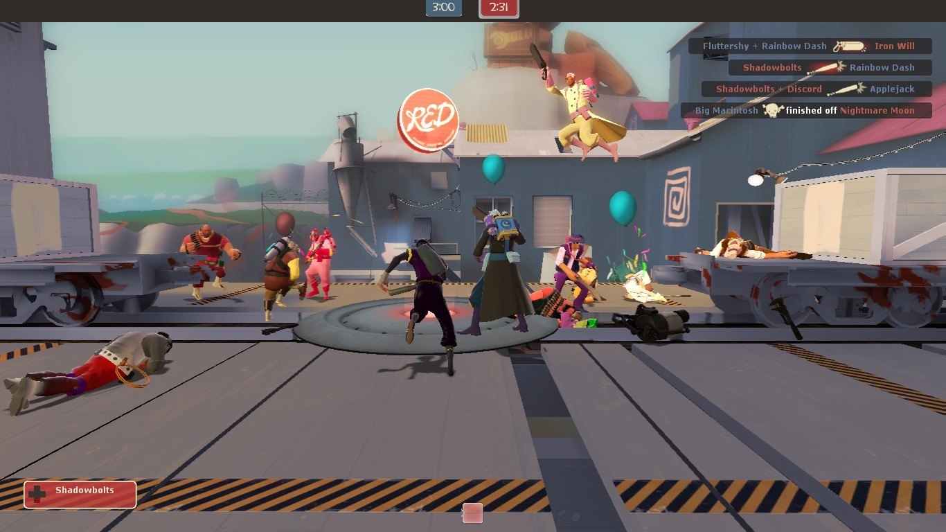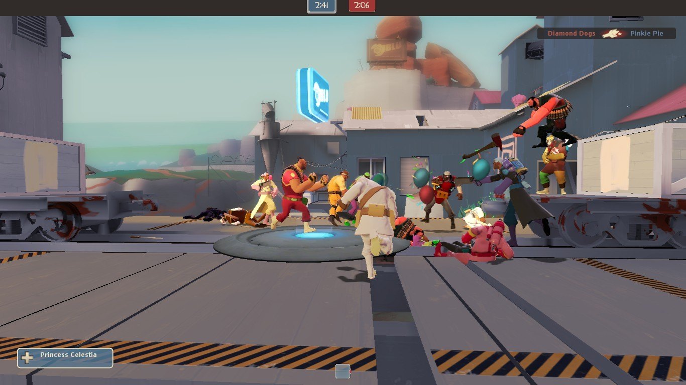 | Добавил: The DSystem 2016-04-10 00:32:17 106 views Heavily revised version of my previous Harmony Vs Chaos Pack, altered for ease of use for people who aren't me. This is a crossover between My Little Pony: Friendship Is Magic and Team Fortress 2. One team has been replaced with the "Harmony" team, consisting of the main protagonists from the show (and Big Macintosh). The other team has been replaced with the "Chaos" team, consisting of major antagonists (and Tirek from the 1984 series). You can choose which team goes on RED and BLU. Also includes gibs (pictured) and zombies (not pictured).