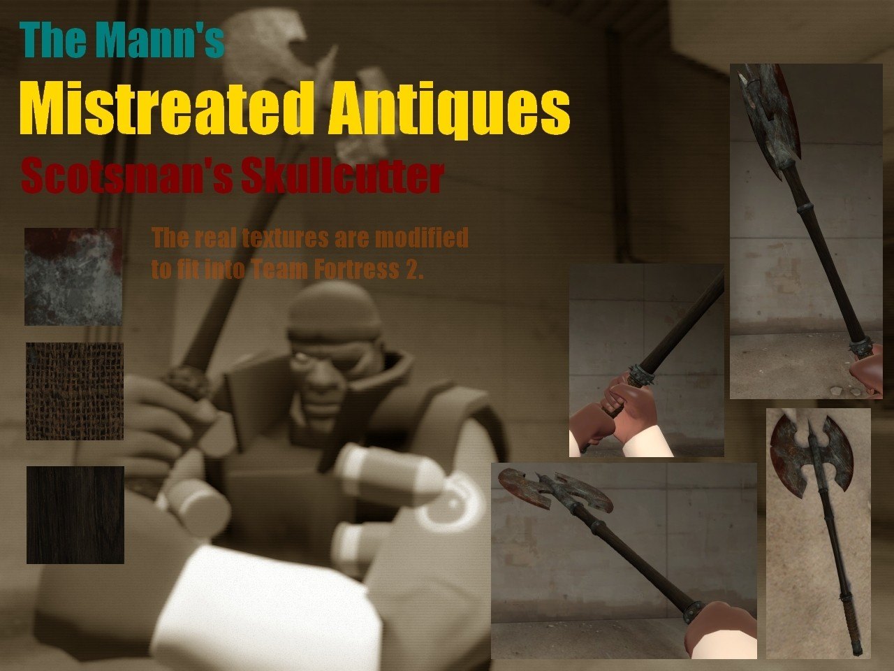 The Sharp Dresser and the Scotsman's Skullcutter reskinned to my liking for you to enjoy.