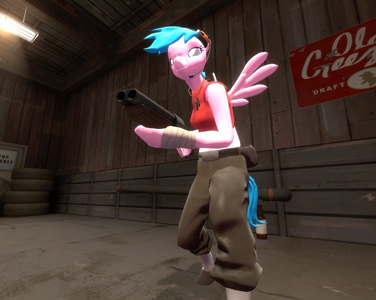 Change your Scout class for a Rainbow Dash, or Derpy hooves, or Scootaloo, or Firefly ponies, complete with face, wings animation, selection class HUD and Ingame portrait.