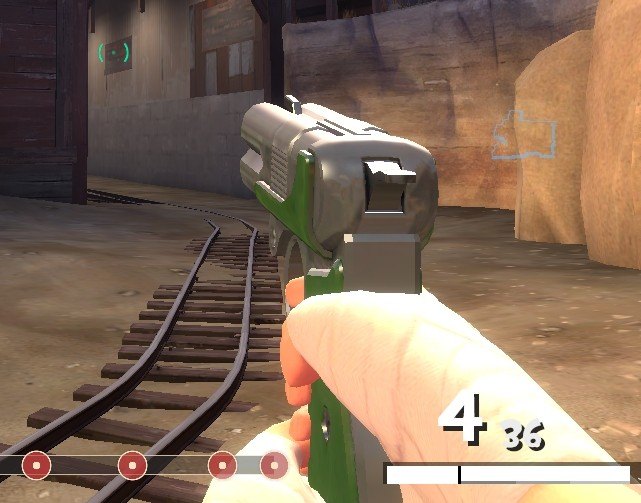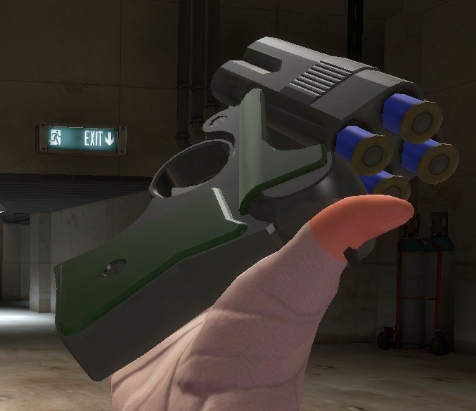 So, here's my first-ever reskin! I always thought the default Shortstop texture was a little lacking, so I coloured it green. I also retextured the ammunition into blue .410 shotshells, which I think looks a lot better than the solid brass defaults.