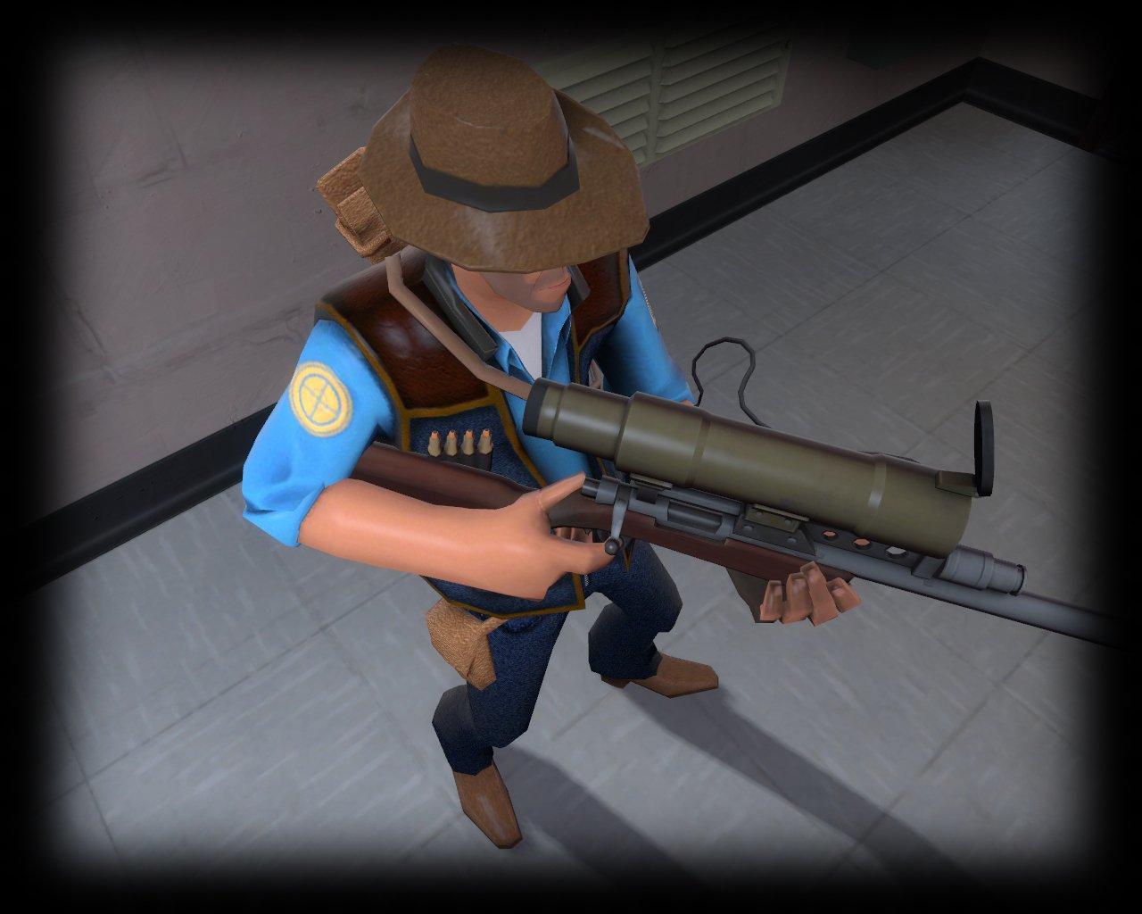 Jeans and Leather Sniper. Comfortable clothing from denim and animal skin. Also includes Zipper Of Awesomeness, Timex Watch and Iron Tip Bullets.