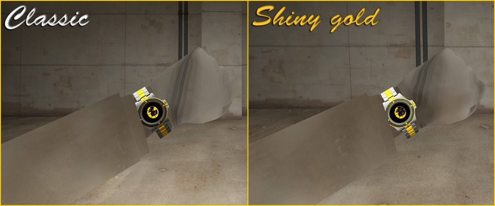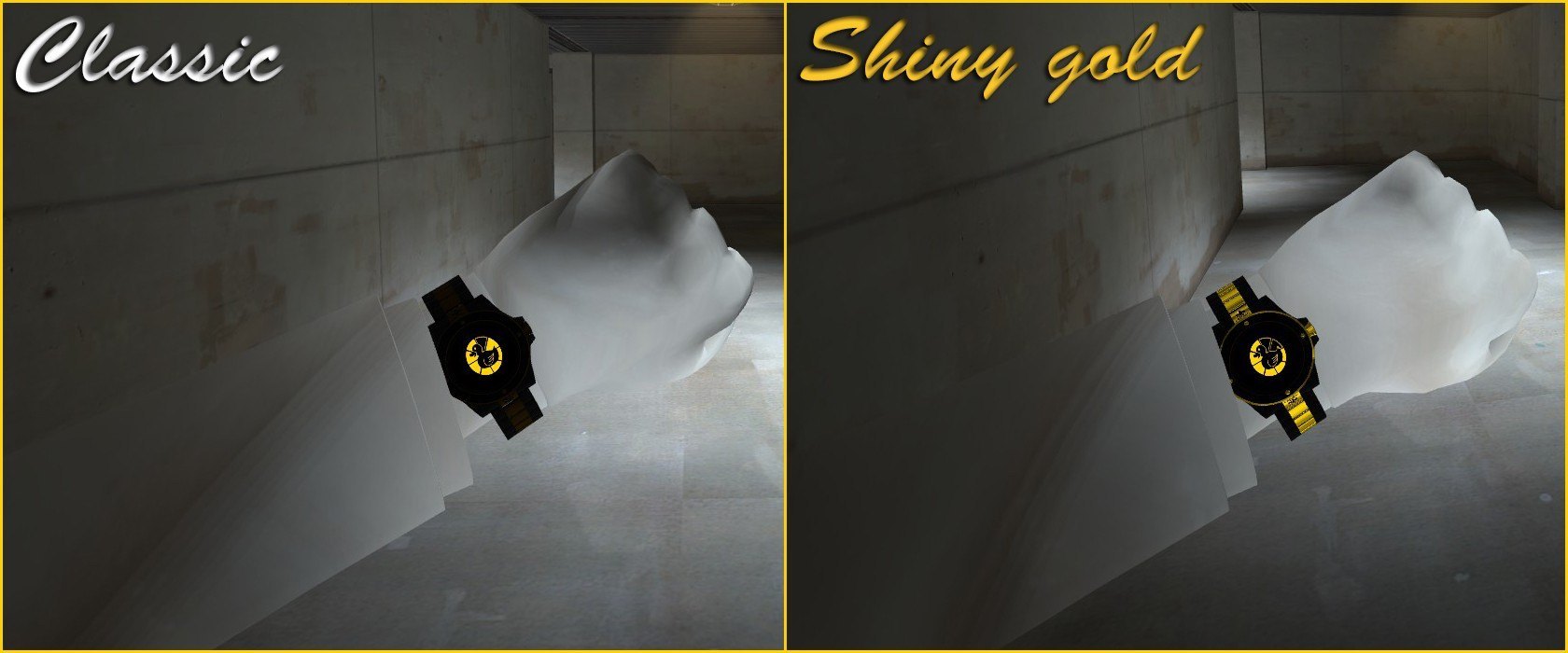 Comes in classic and shiny gold versions and a choice of visible or invisible watch when cloaked for both versions, like the first Stylish Cloaks.