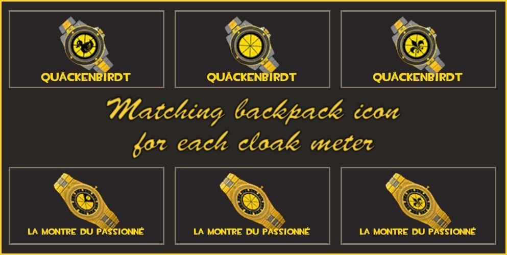 Added normal maps, new textures and three custom cloak meters with matching backpack icons for each one.